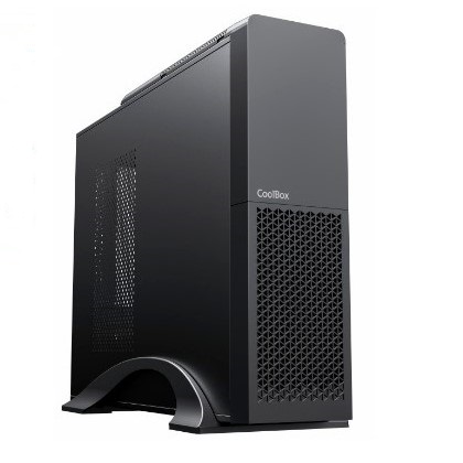 Este chasis puede venir equipado con una fuente CoolBox BASIC-500GR-S de 500W o 300SBZ SFX 80+ Bronze, ofreciendo eficiencia y fiabilidad para sistemas de gama básica o media. Además, incluye opciones de seguridad física como soporte para candado, cierre Kensington y botón de alarma (opcional), ideales para entornos corporativos.