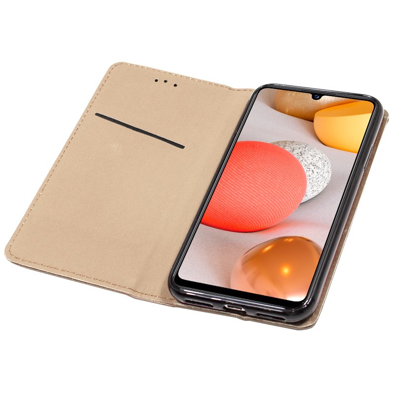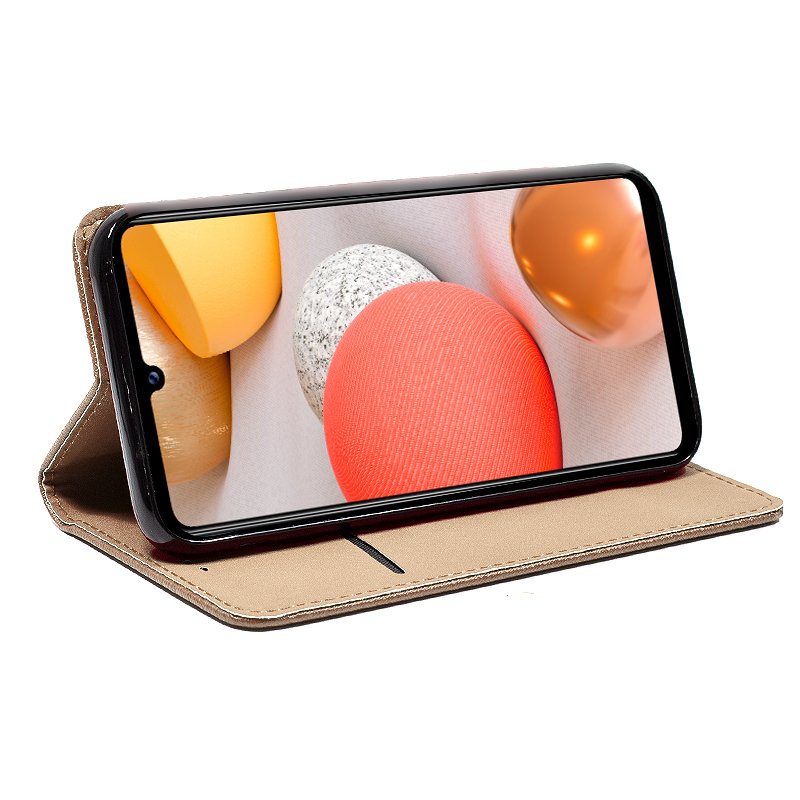 O case incorpora uma concha na qual o Samsung Galaxy A42 5G se encaixa, sendo perfeitamente fixado. Material de ótima qualidade e resistência. Inclui ímã para fechamento.