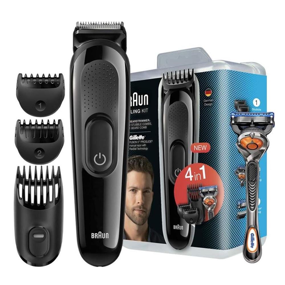 El Afeitador Braun SK3000 te ofrece un estilo impecable de pies a cabeza. Este kit de cuidado personal 4 en 1, incluye recortadora y rasuradora, que puedes usar sin cables para una mayor comodidad.