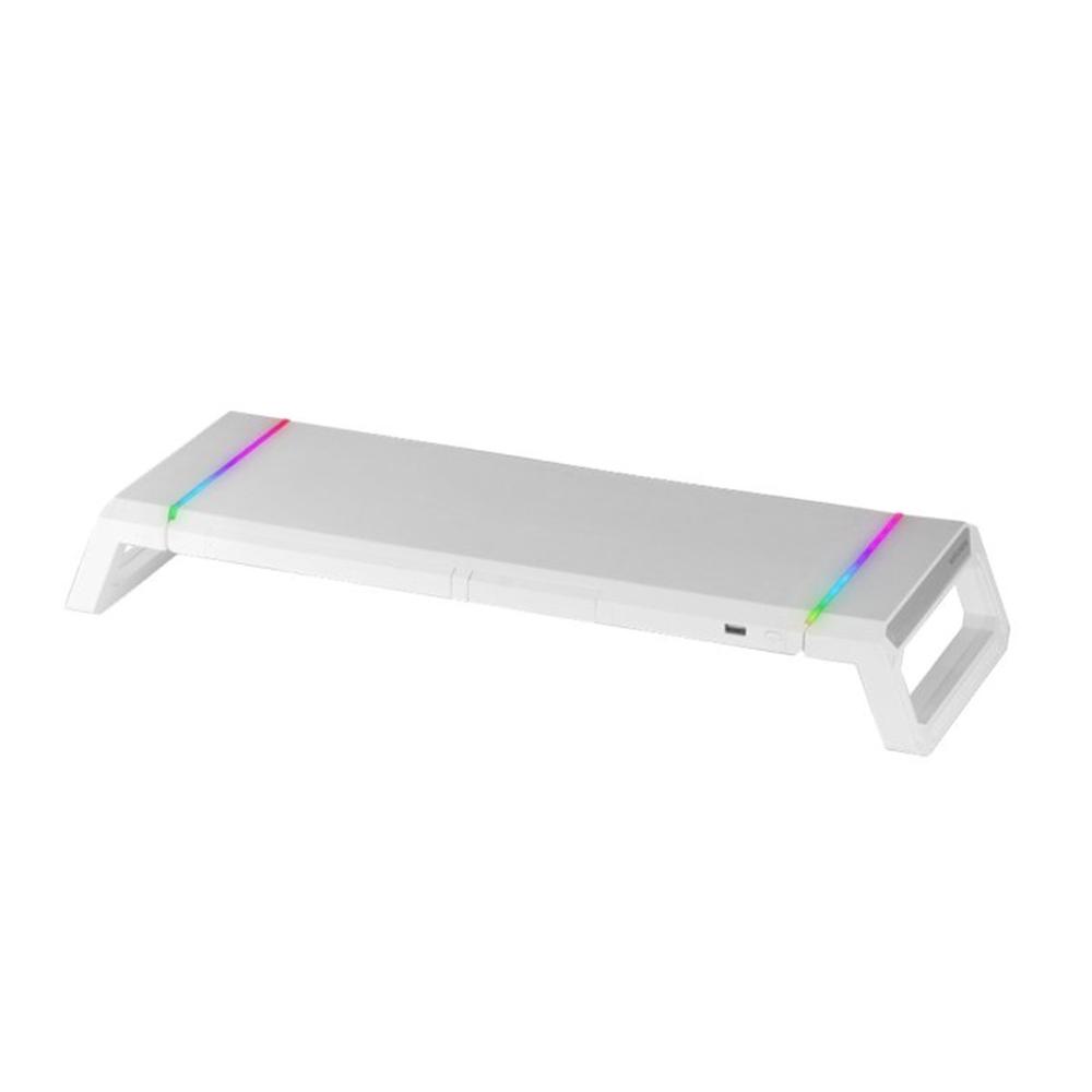 Base ajustable con iluminación RGB Chroma diseñada para optimizar el espacio y mejorar la funcionalidad de tu setup. Fabricada en ABS resistente y disponible en colores negro o blanco, esta base soporta hasta 30 kg, lo que la hace ideal para una amplia gama de dispositivos. Ofrece 10 efectos de iluminación personalizables y conectividad USB 2.0 para mayor comodidad.